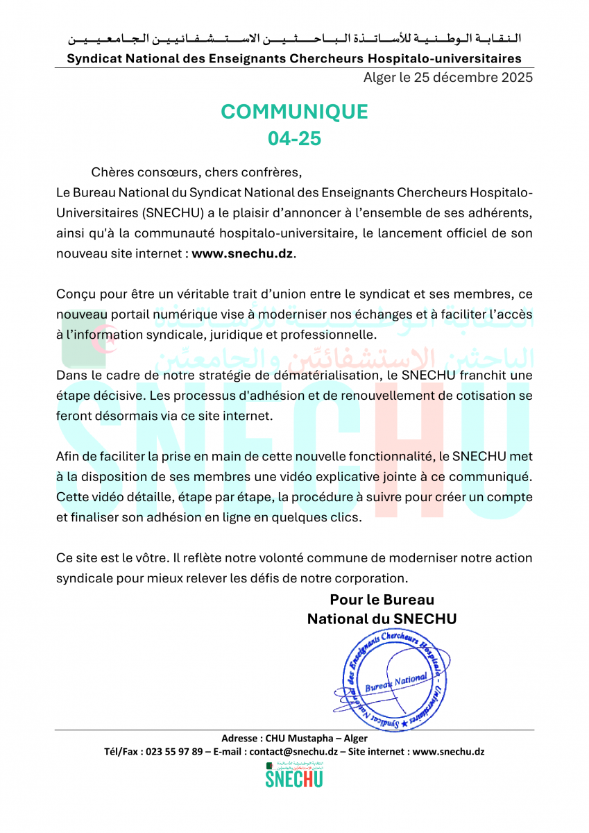 Syndicat National des Enseignants Chercheurs Hospitalo-Universitaires - النقابة الوطنية للأساتذة الباحثين الاستشفائيين والجامعيين